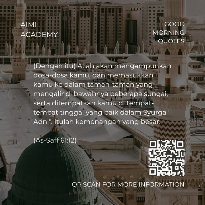 Good Morning Quotes (Dengan itu) Allah akan mengampunkan dosa-dosa kamu, dan memasukkan kamu ke dalam taman-taman yang mengalir di bawahnya beberapa sungai, serta ditempatkan kamu di tempat-tempat ...
