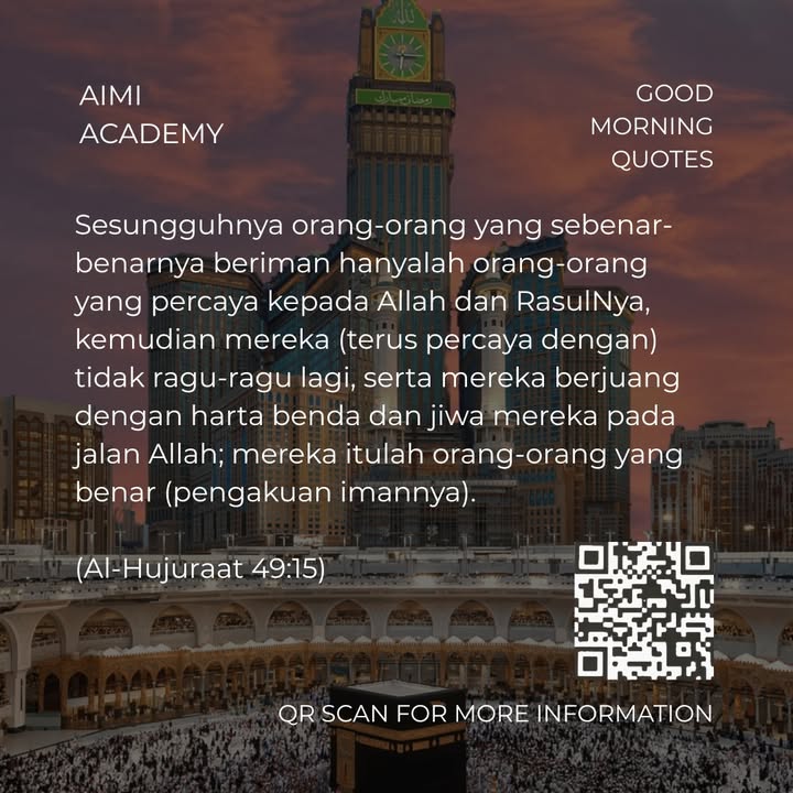 Good Morning Quotes Sesungguhnya orang-orang yang sebenar-benarnya beriman hanyalah orang-orang yang percaya kepada Allah dan RasulNya, kemudian mereka (terus percaya dengan) tidak ragu-ragu lagi,...
