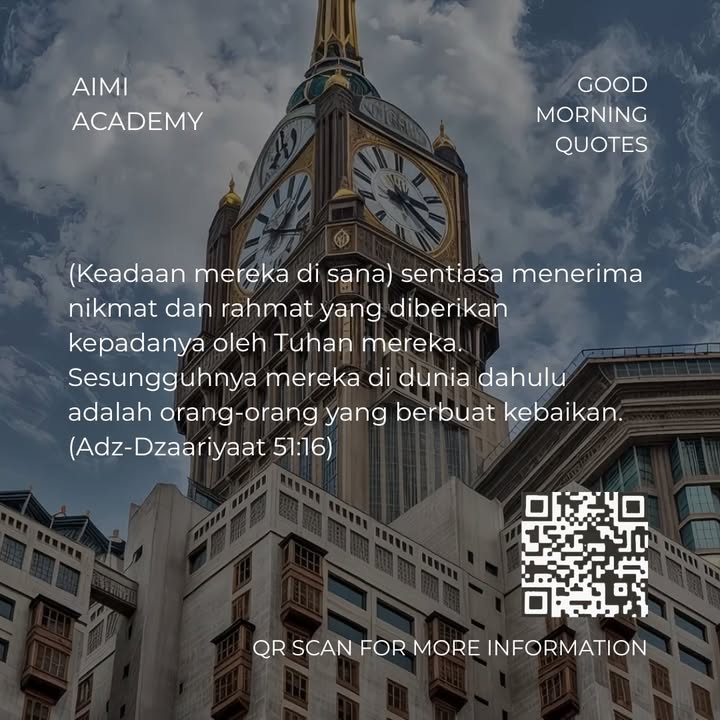 Good Morning Quotes (Keadaan mereka di sana) sentiasa menerima nikmat dan rahmat yang diberikan kepadanya oleh Tuhan mereka. Sesungguhnya mereka di dunia dahulu adalah orang-orang yang berbuat keba...