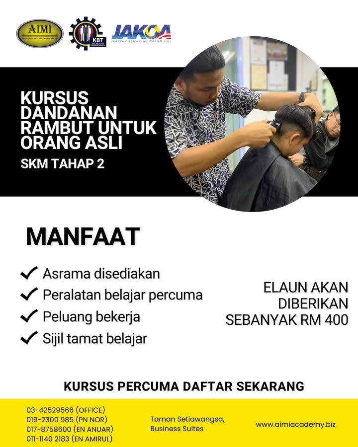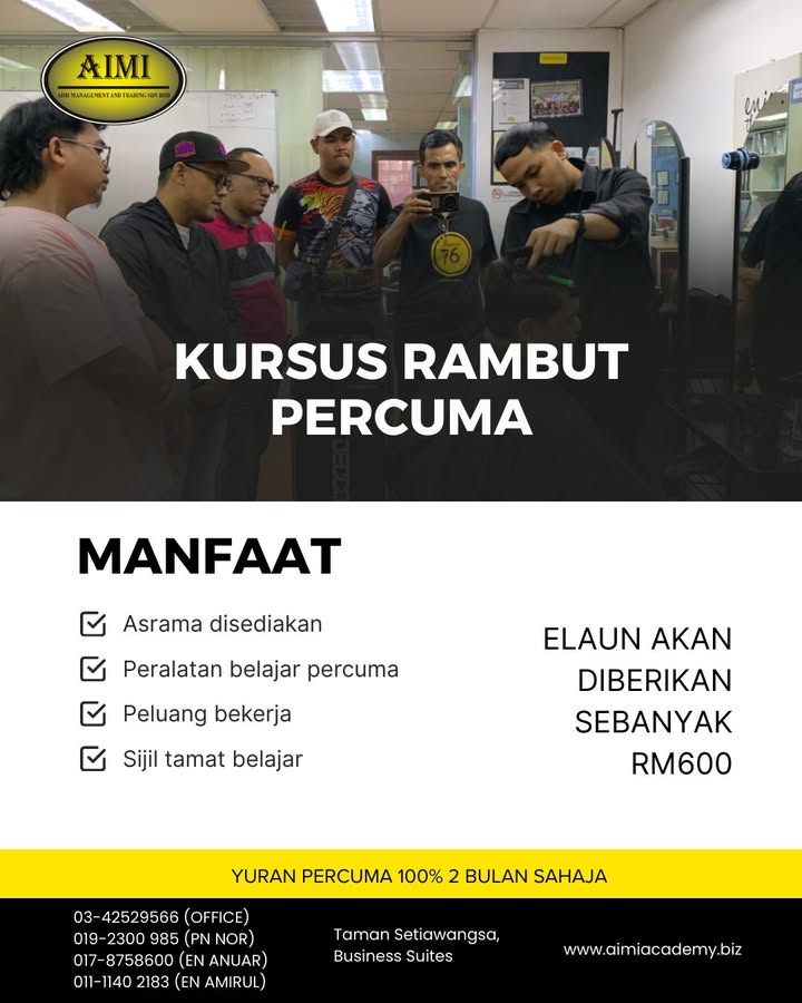 ❌ Tidak memerlukan sebarang bayaran ❌ Tidak memerlukan pengalaman terdahulu ✅ Terus belajar kemahiran dandanan rambut secara praktikal ✨ KURSUS RAMBUT PERCUMA ✨ ⏰ Tempoh kursus: 1 Bulan Sahaja Prog...