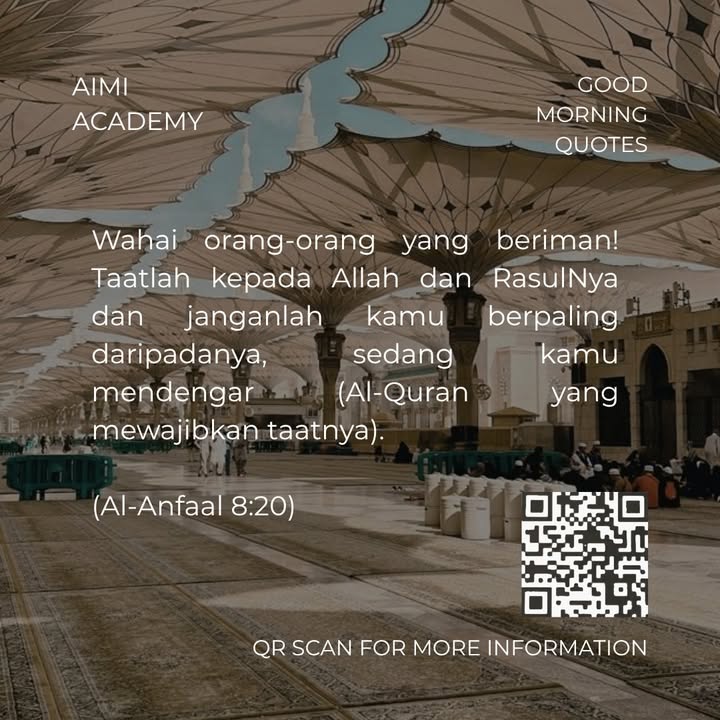 Good Morning Quotes Wahai orang-orang yang beriman! Taatlah kepada Allah dan RasulNya dan janganlah kamu berpaling daripadanya, sedang kamu mendengar (Al-Quran yang mewajibkan taatnya). (Al-Anfaal ...